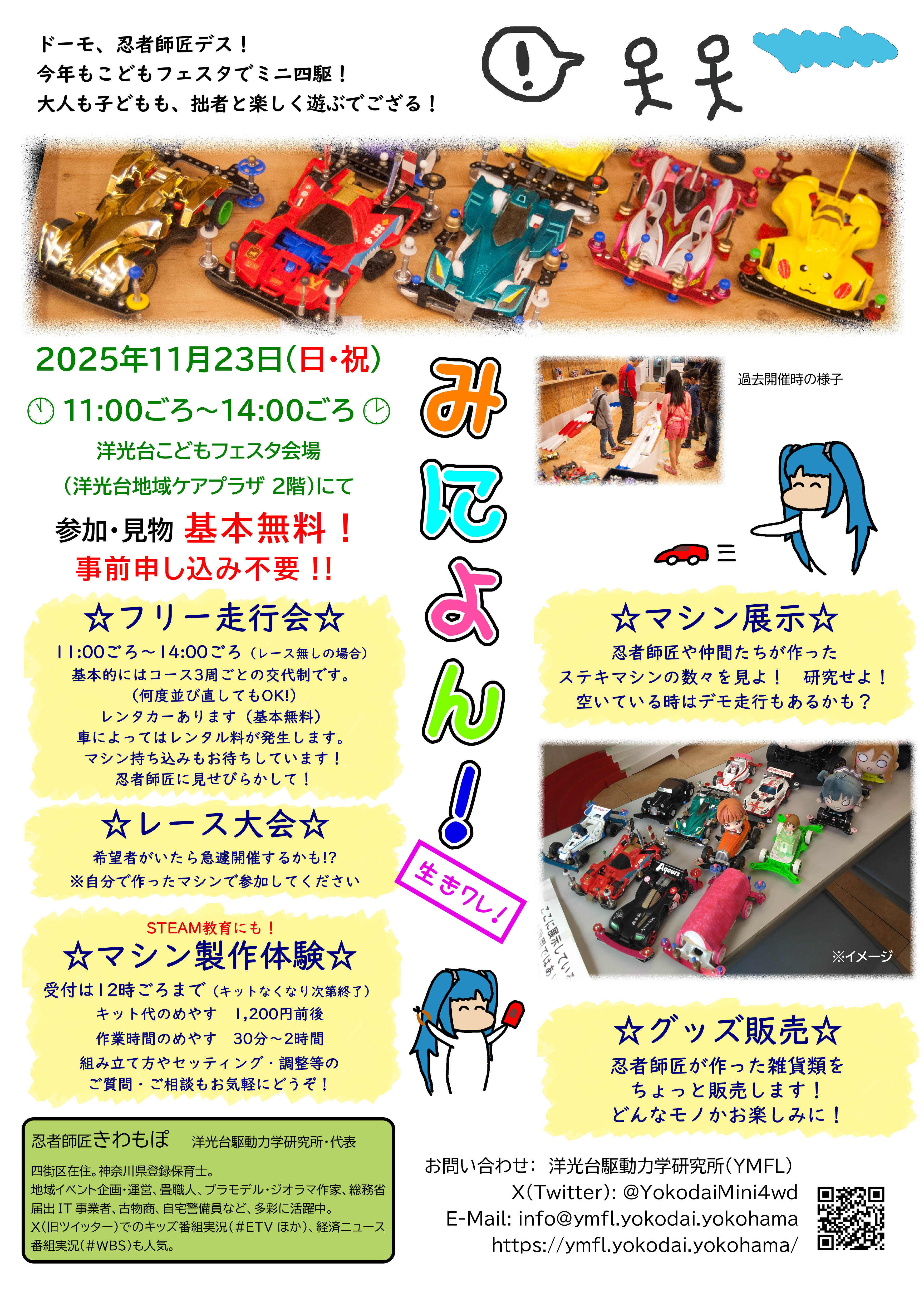 2025年11月23日(日・祝)11~14時、今年も「洋光台こどもフェスタ」でミニ四駆コーナーやります!